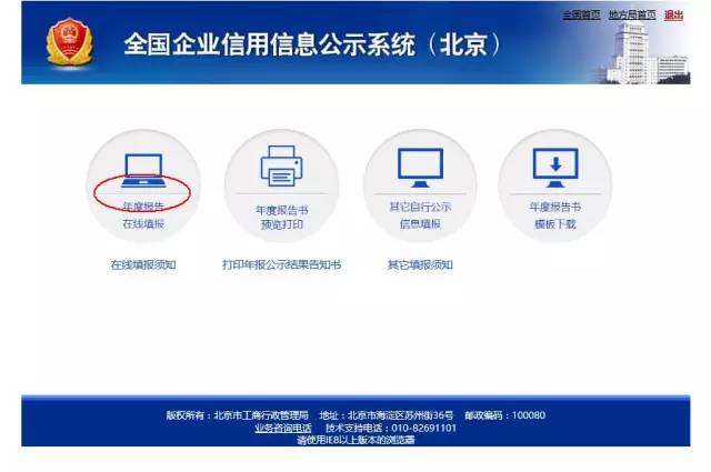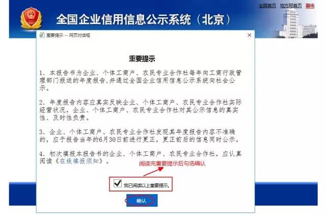 登陆首页面。填报年报公示信息前,请先阅读“在线填报须知”。