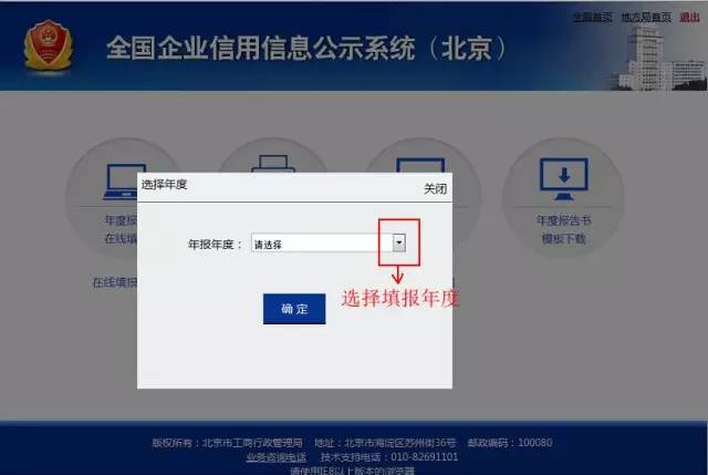 选择填报年度。如往年未填报,须先补报,再报送2016年度的年报。