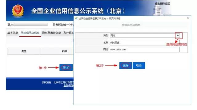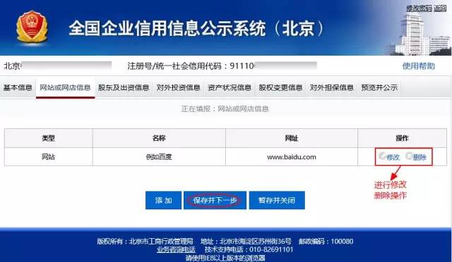填写“网站或网店信息”,可添加多条网站或网店信息,也可修改或删除信息。