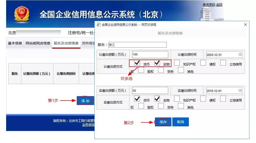填写“股东及出资信息”。每位股东(发起人)的出资信息只需填报一条,股东(发起人)认缴和实缴出资额为截至报告年度12月31日的累计数额(如果实缴出资截止到当年度尚未缴付,填写“0”),其中外商投资企业认缴和实缴出资额的币种与注册资本一致;认缴和实缴出资时间为截至报告年度12月31日最后一次认缴和实缴时间。