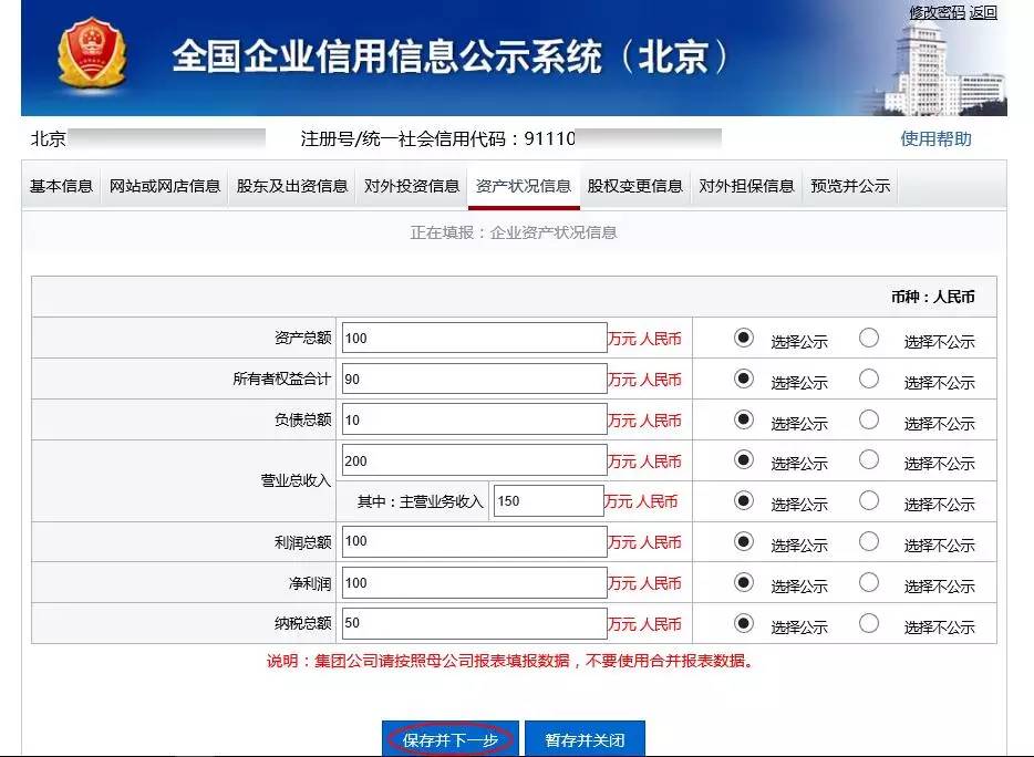 填写“资产状况信息”。资产状况信息是非强制性公示的事项,企业自行选择是否向社会公示。